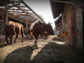Unsere Schweine sind altersgemischt in einem Stall mit warmem Liegebereich untergebracht und können sich nach Bedarf frei im vergrößerten Auslauf bewegen. Unsere Rinder werden im Offenstall in Gruppen gehalten. Die artgerechte Tierhaltung, das betrifft sämtliche auf dem Hofgut lebenden Tiere, der hofeigene Anbau von Futtermitteln und die biologisch-dynamische Wirtschaftsweise sind die wichtigsten Richtlinien des Demeter-Anbauverbandes und garantieren eine hohe Qualität unseres Fleisches.